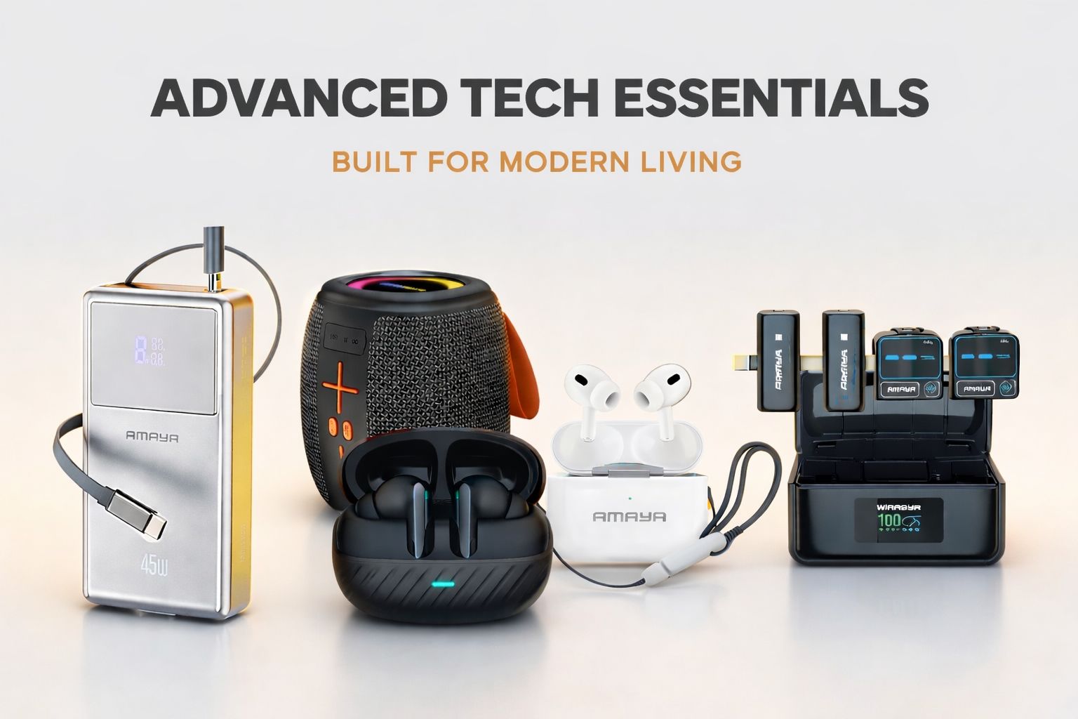 Our wireless earbuds are loved for their long-lasting battery, smooth connectivity, and modern aesthetics. At the same time, our power banks keep you powered throughout the day—whether you’re working, traveling, or attending long events. With fast-charging technology and compact designs, they’re built to move with you.